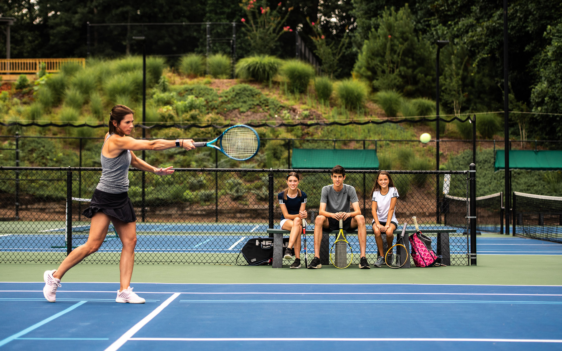 Every day is a good day for tennis at Brookfield, home to six hard and four clay tennis courts, a full tennis pro shop and many different events, programming and leagues. From competitive tennis players to beginners, everyone is connected by their love of this sport.