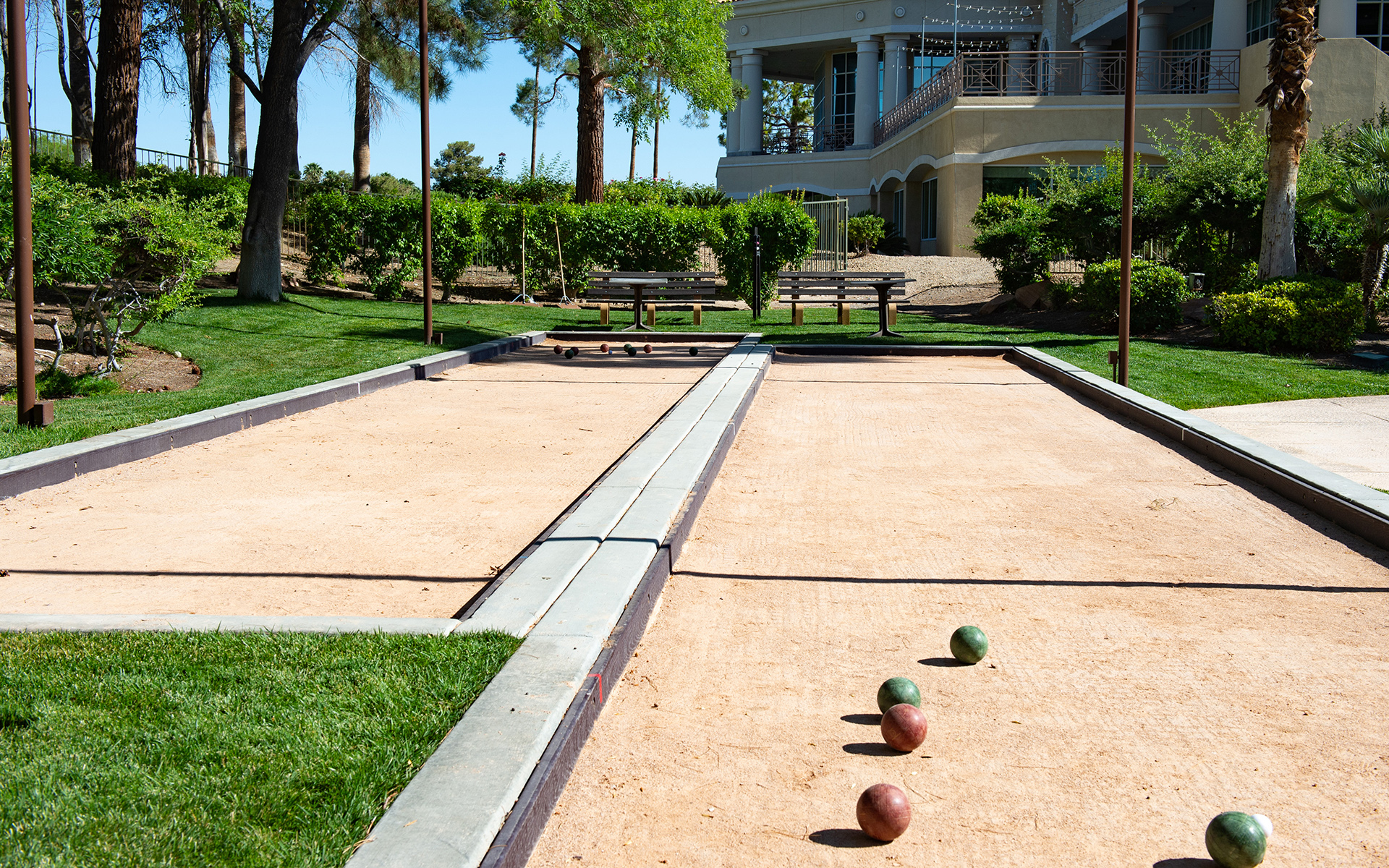 Enjoy some friendly competition on our bocce ball courts! Bocce, also known as Italian lawn bowling, is a classic game that dates back to ancient Greece and Rome. The goal is simple—roll your ball closest to the target ball to earn points, and try to knock your opponents out of position along the way. Courts are available during normal business hours. Bocce sets can be checked out in the Racquet Shop on a first-come, first-served basis, or feel free to bring your own. No reservations needed!