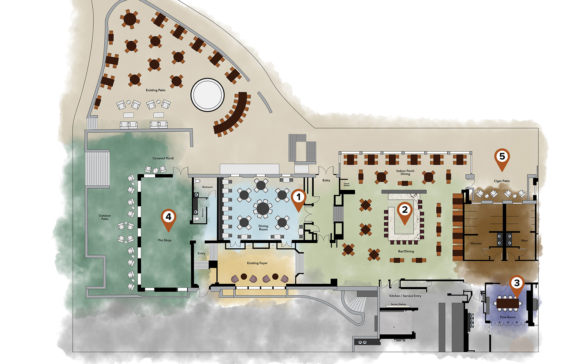 - Golf Pro Shop: Featuring a modern design, our new golf pro shop will offer the latest equipment, attire, and accessories. Complete!