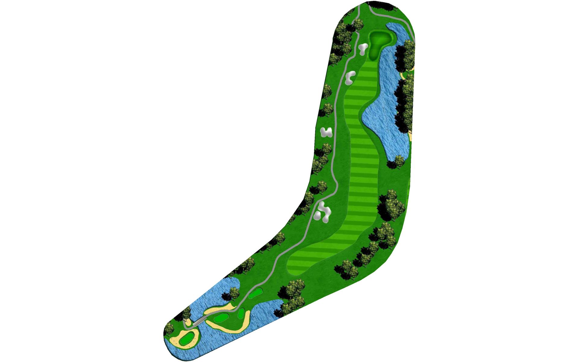 This double dogleg par 5 is reachable in 2 if you challenge the left fairway bunker and trees off the tee. You will have to shape your second shot around a few well placed trees to get an eagle chance.