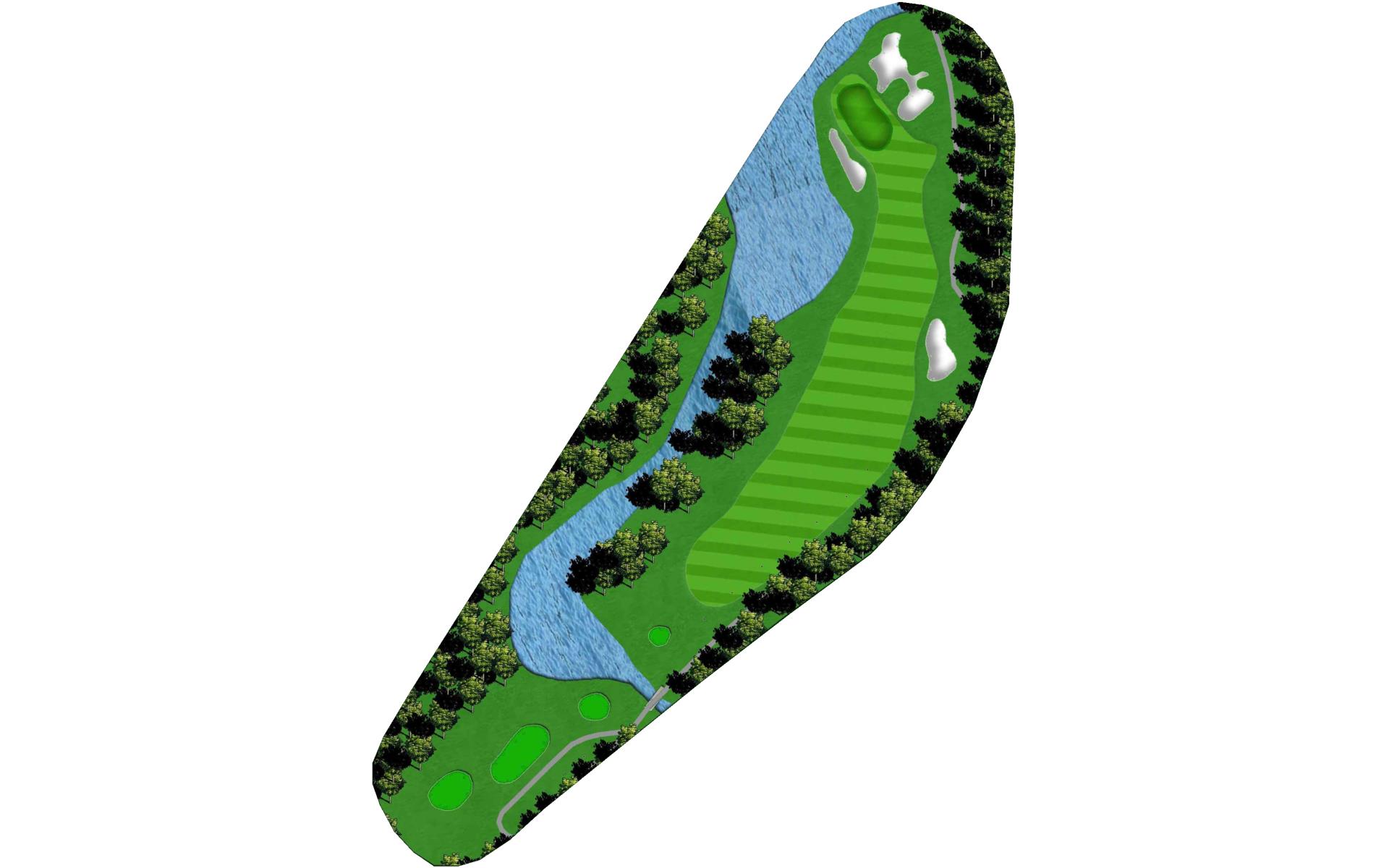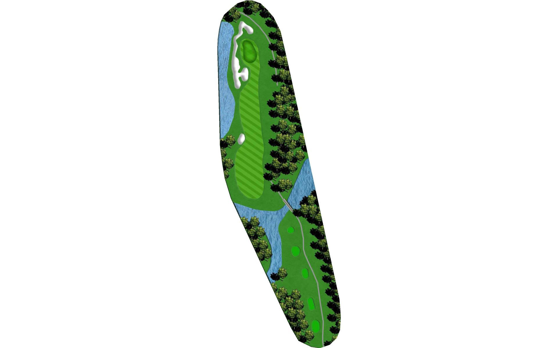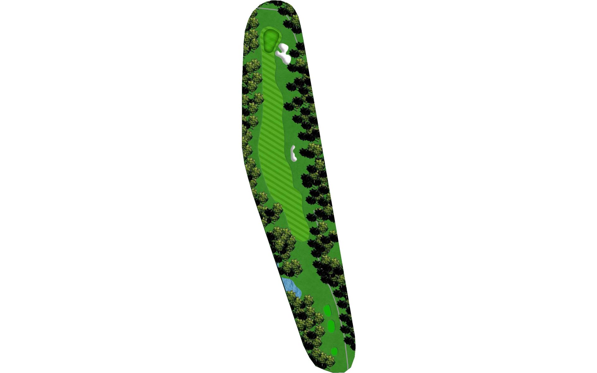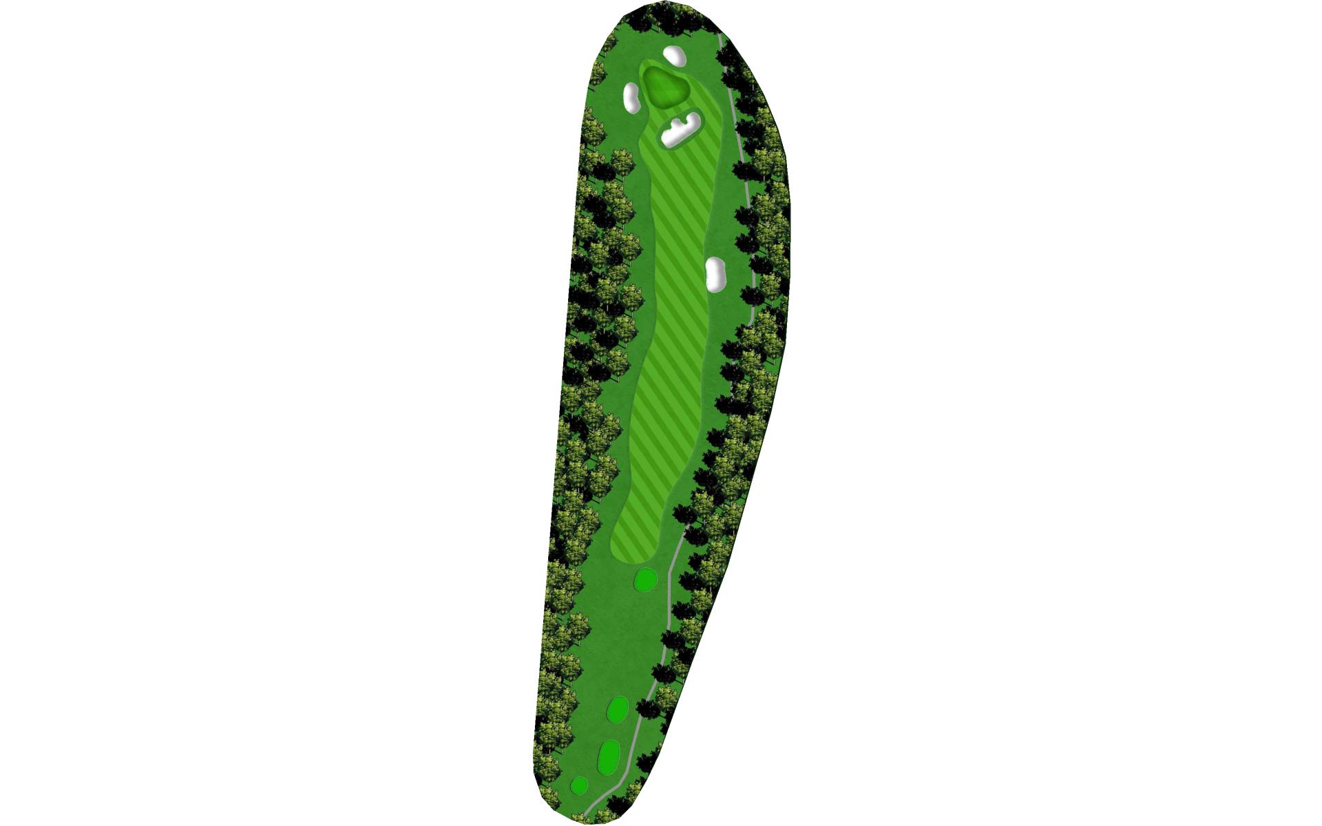 A fairly short par 4 with a well protected green. Keep the drive to the right side of the fairway which will give you more options for your second shot. Hit the driver though as it's a birdie opportunity.