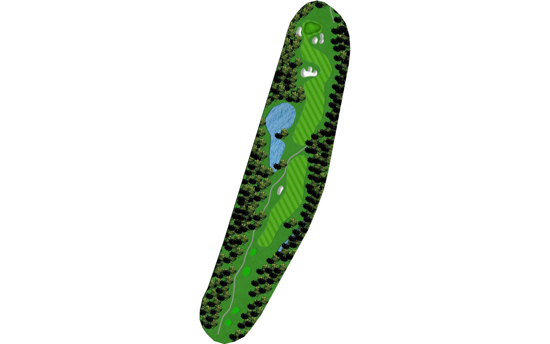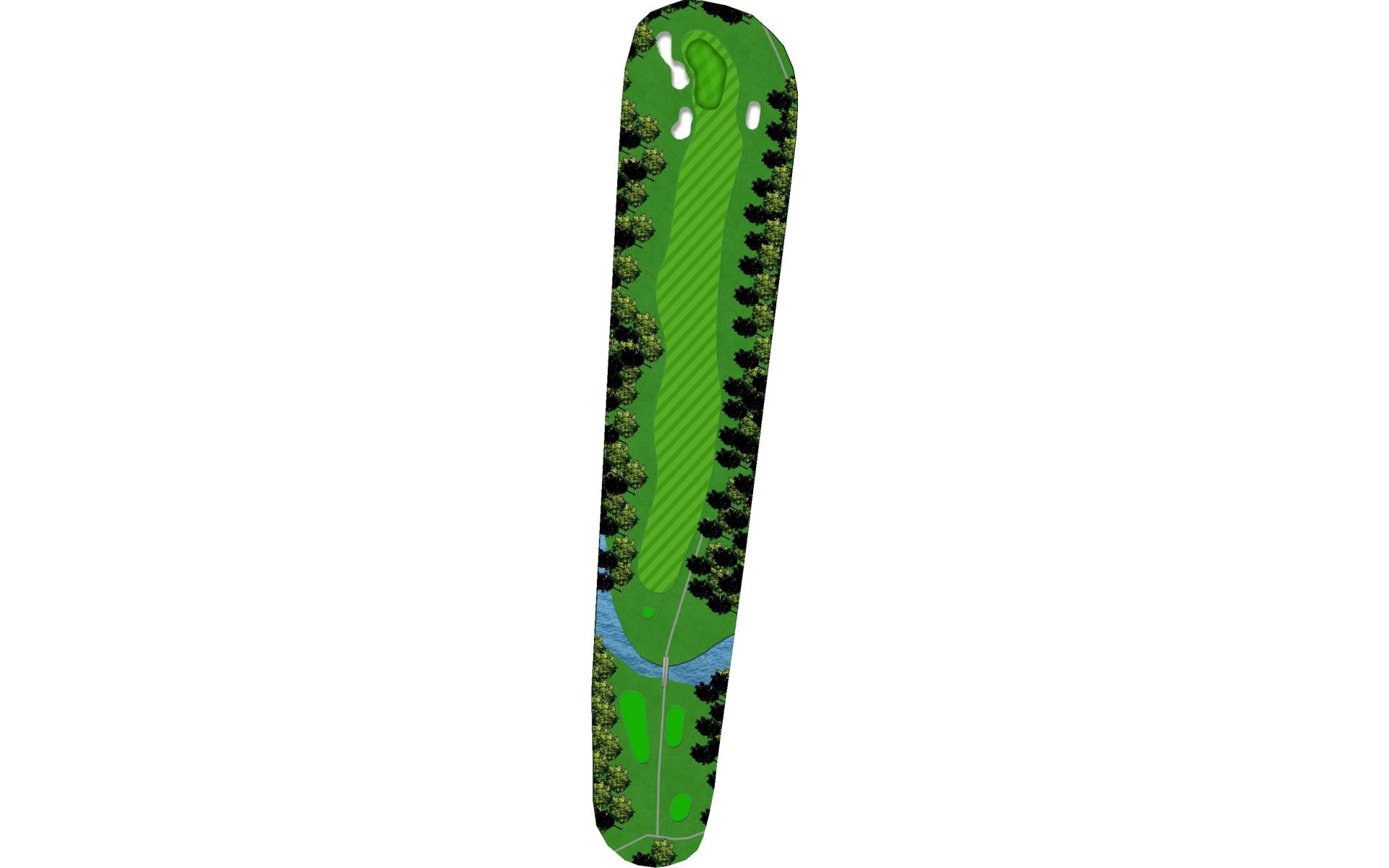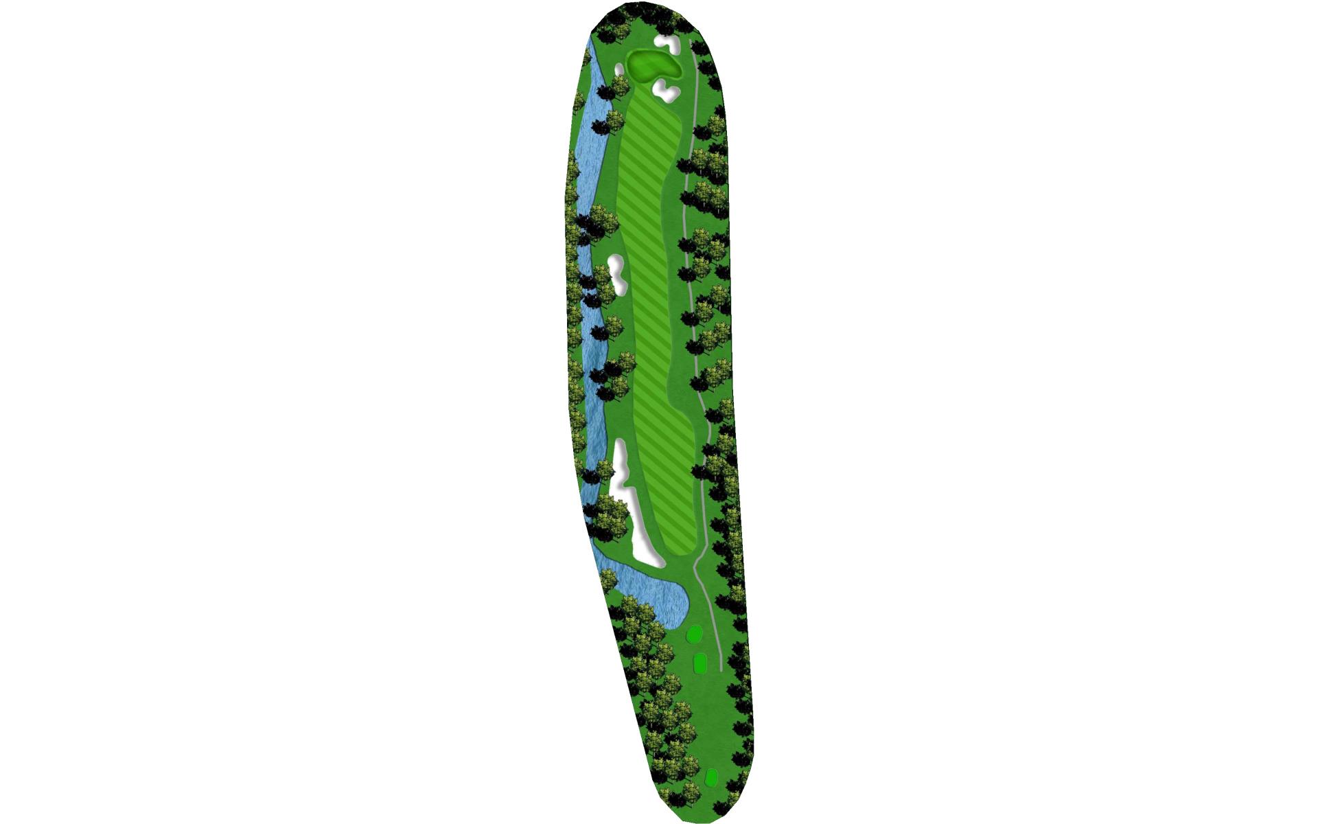 A demanding and intimidating straightaway par 4 with OB left and water on the right. The fairway is roomier than it may appear so let go of the steering wheel and let her rip.