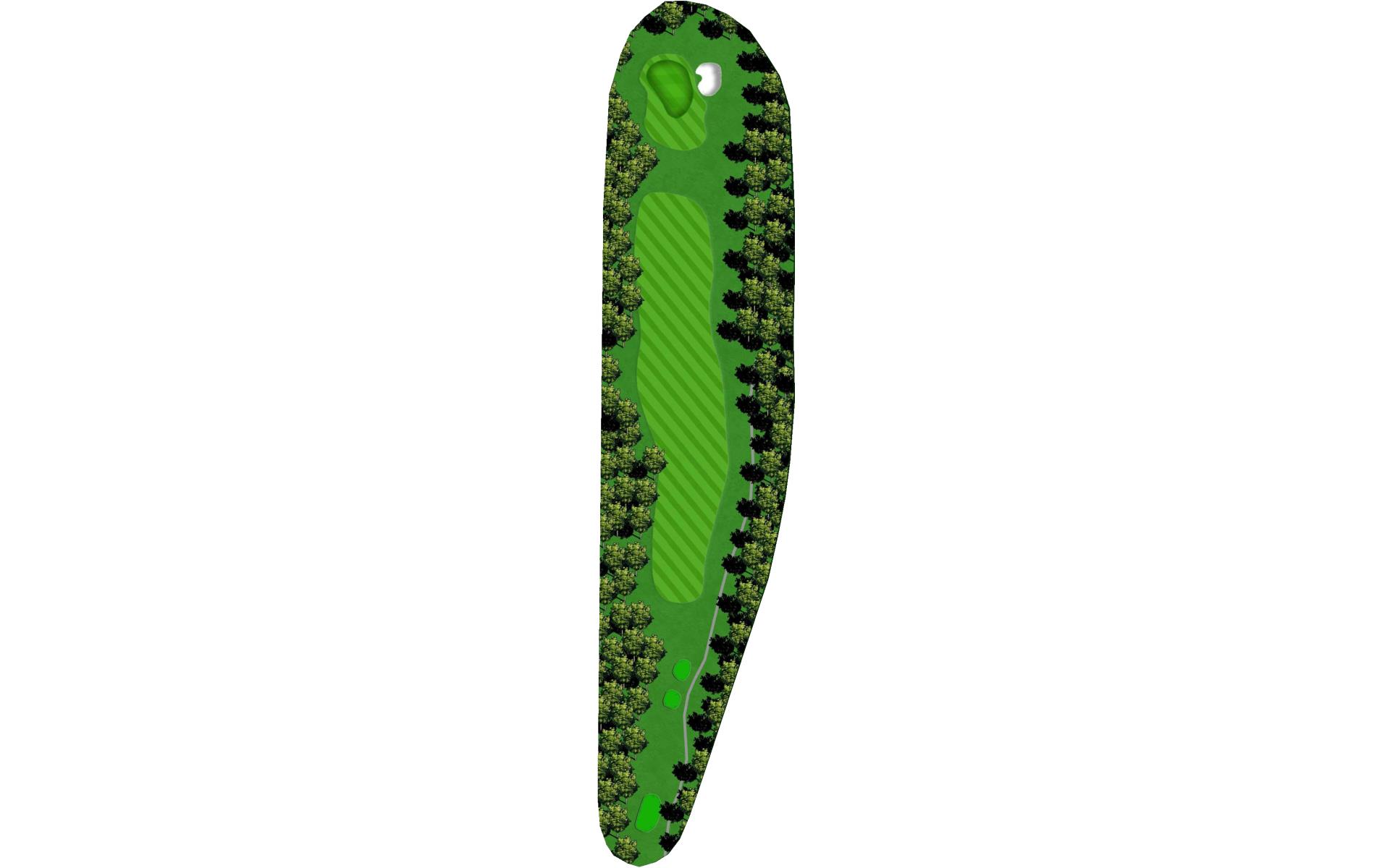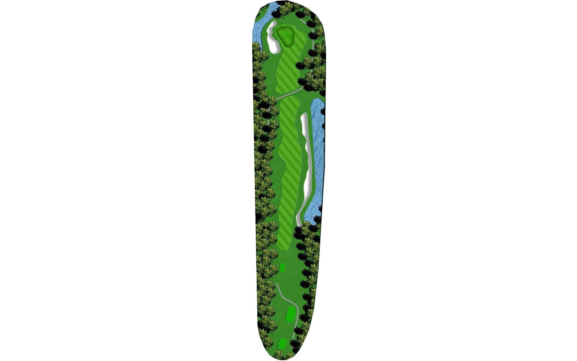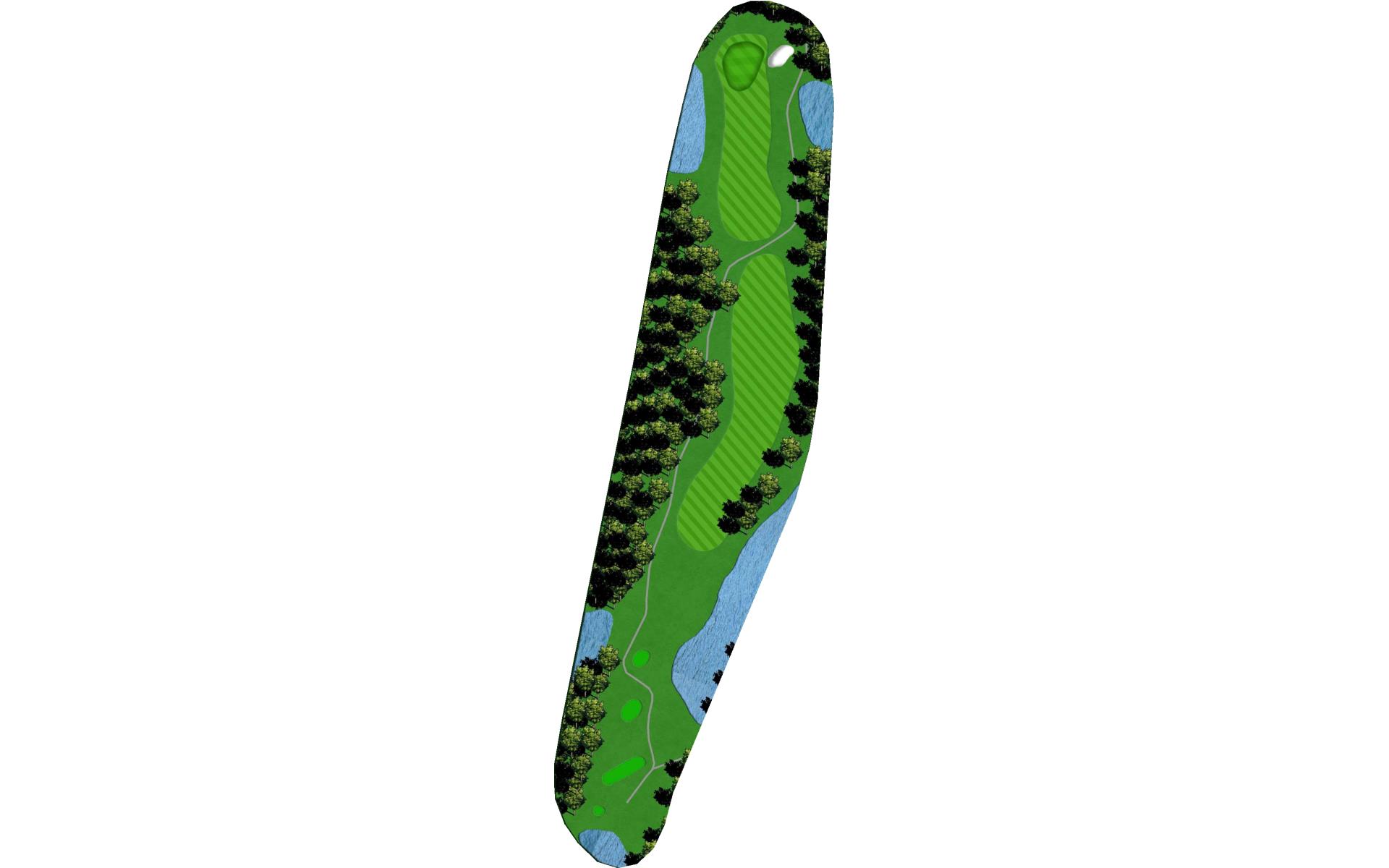 A demanding and intimidating straightaway par 4 with OB left and water on the right. The fairway is roomier than it may appear so let go of the steering wheel and let her rip.