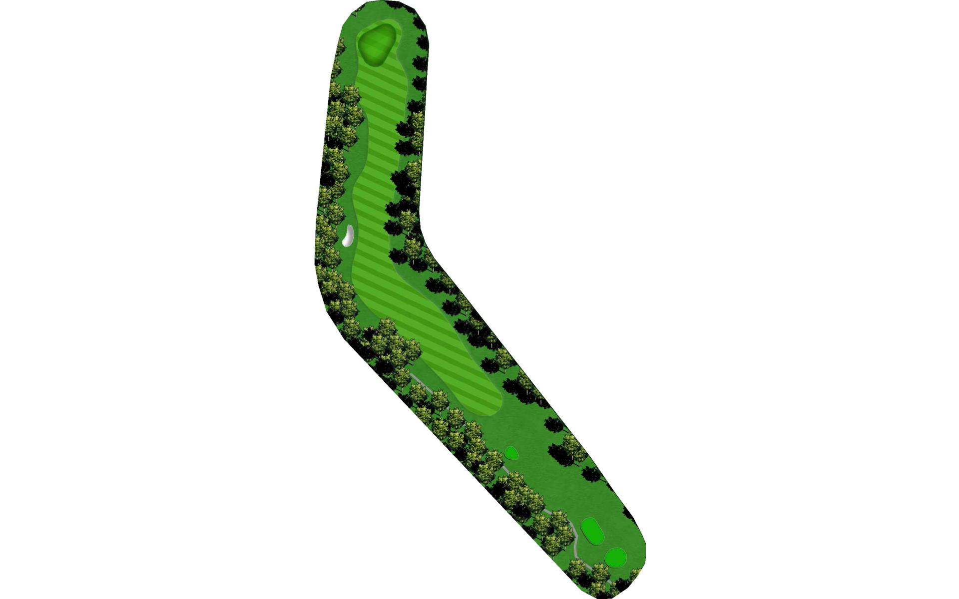 A dogleg right with a slight uphill second shot. You may want to keep the driver in the bag on this hole as positioning is more important than distance. You can usually play from the penalty area to the right off the tee but you'll have to bend it quite a bit if you're looking to make par.