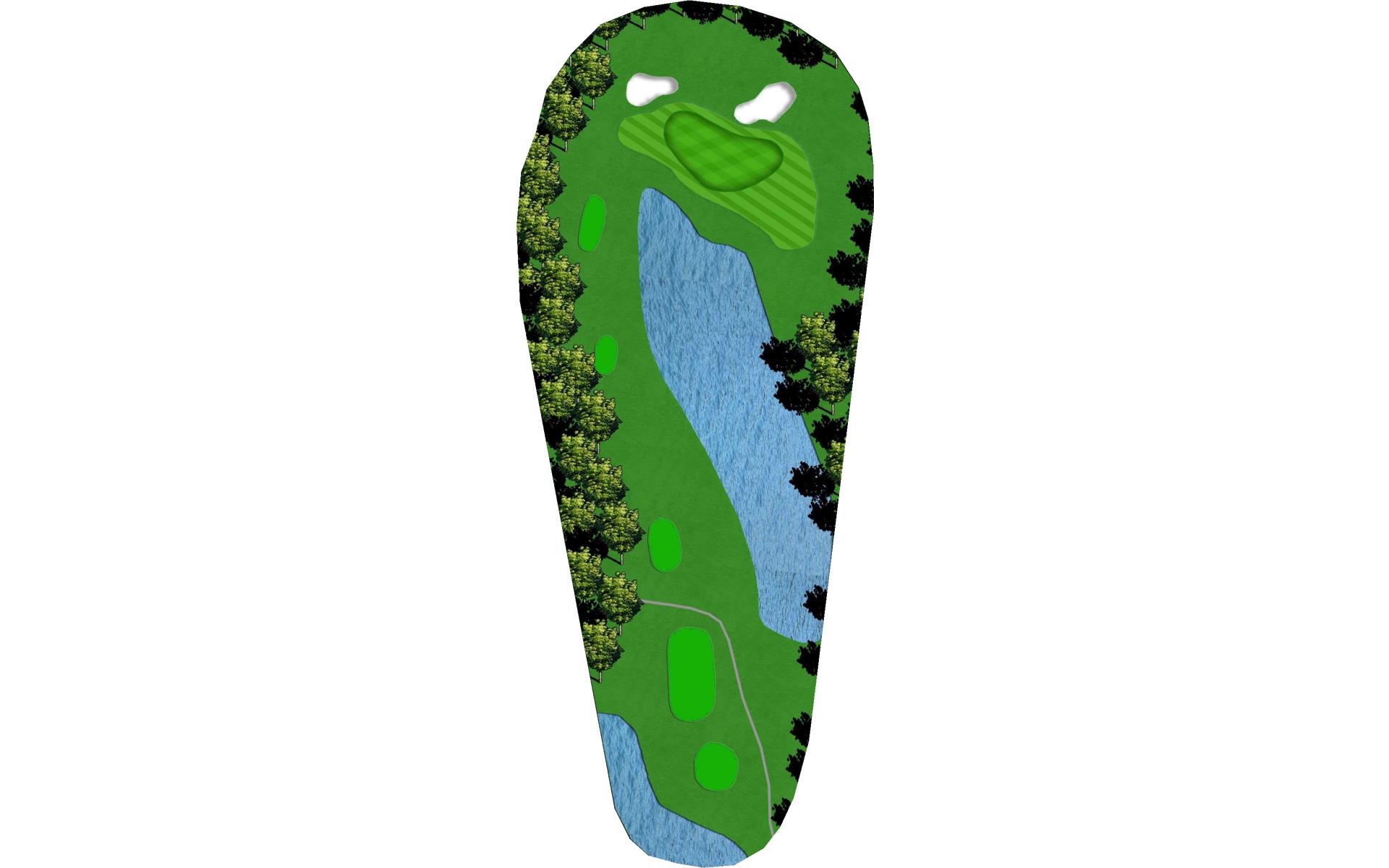 The last par three on the course has a deep bunker right in front. Aim a bit left of the flag and be sure to hit enough club. No problem missing the green to the left as it's a pretty easy up and down, but don't miss it to the right.