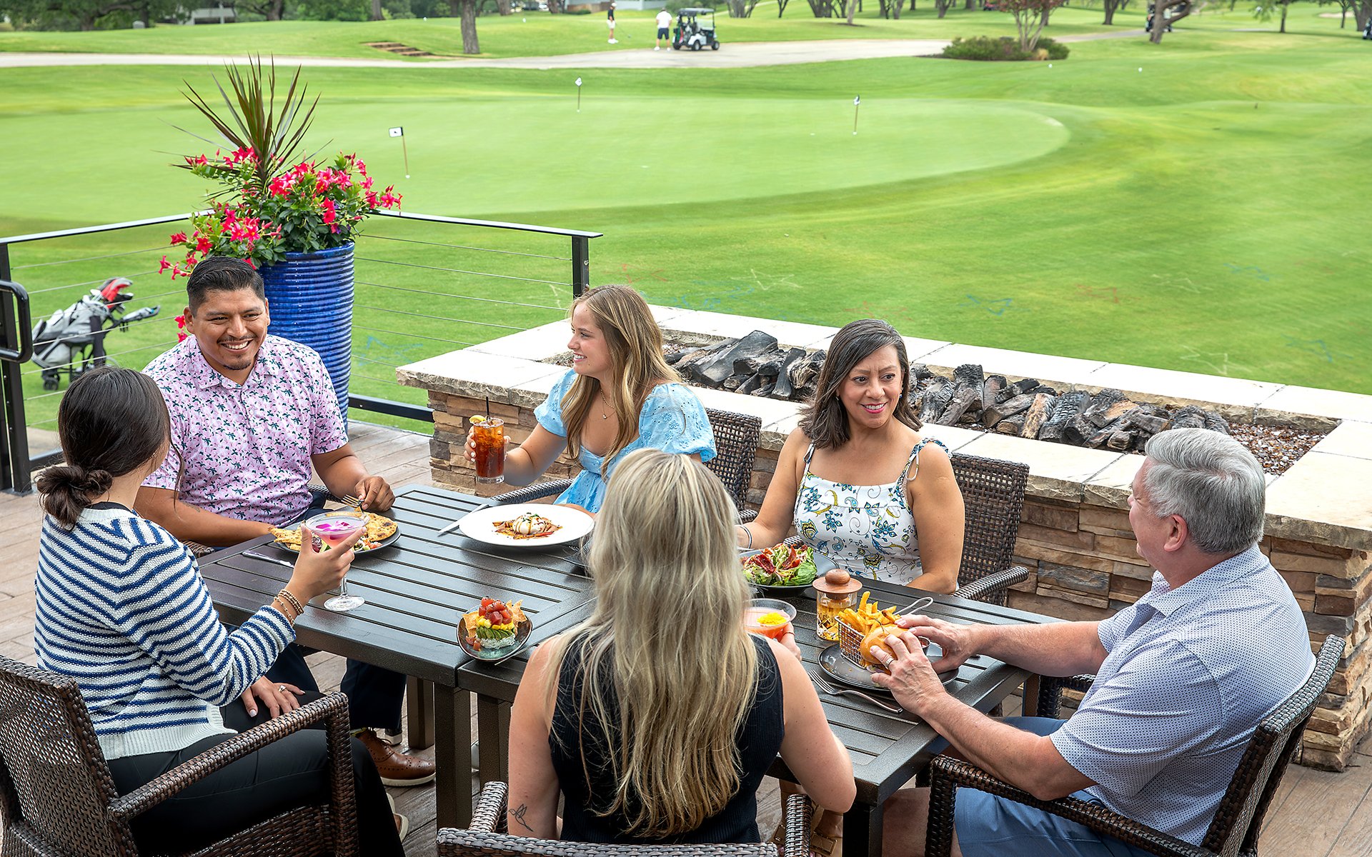 Savor spectacular cuisine with breathtaking views of the 18th green of the championship golf course and downtown Dallas.