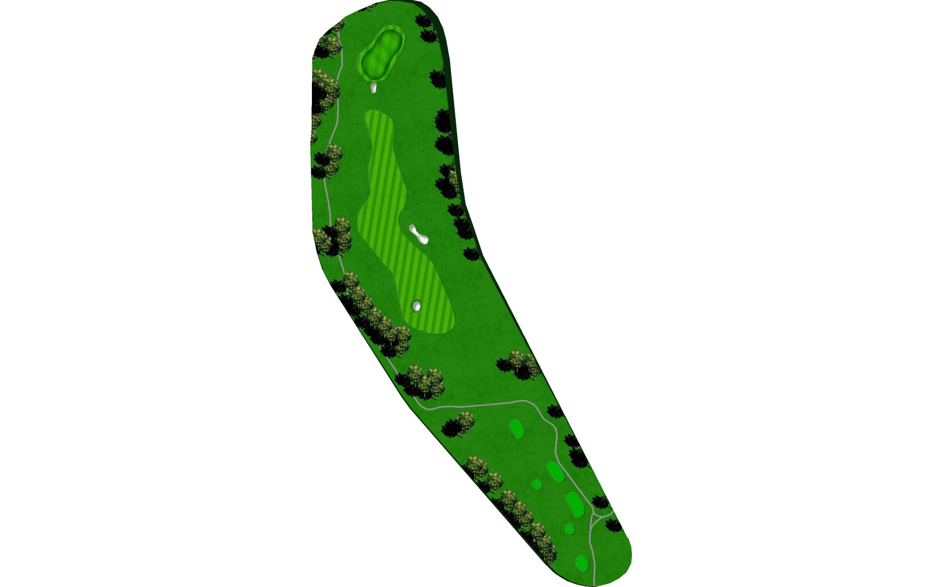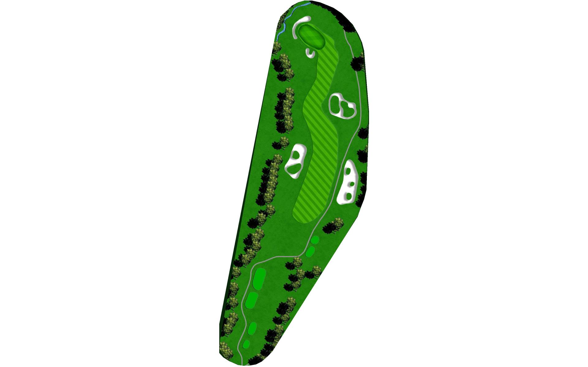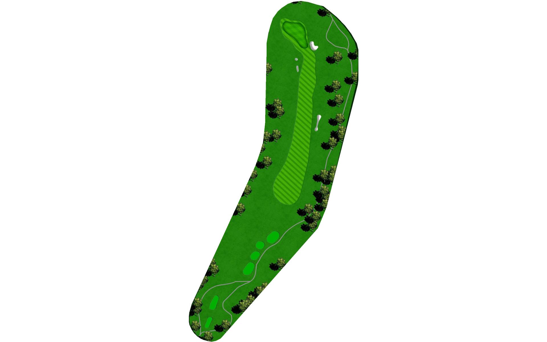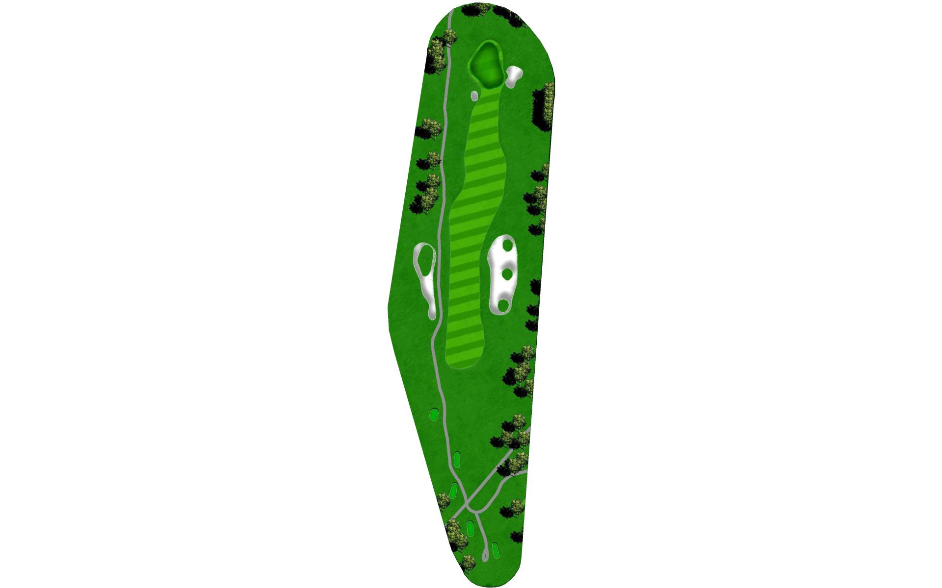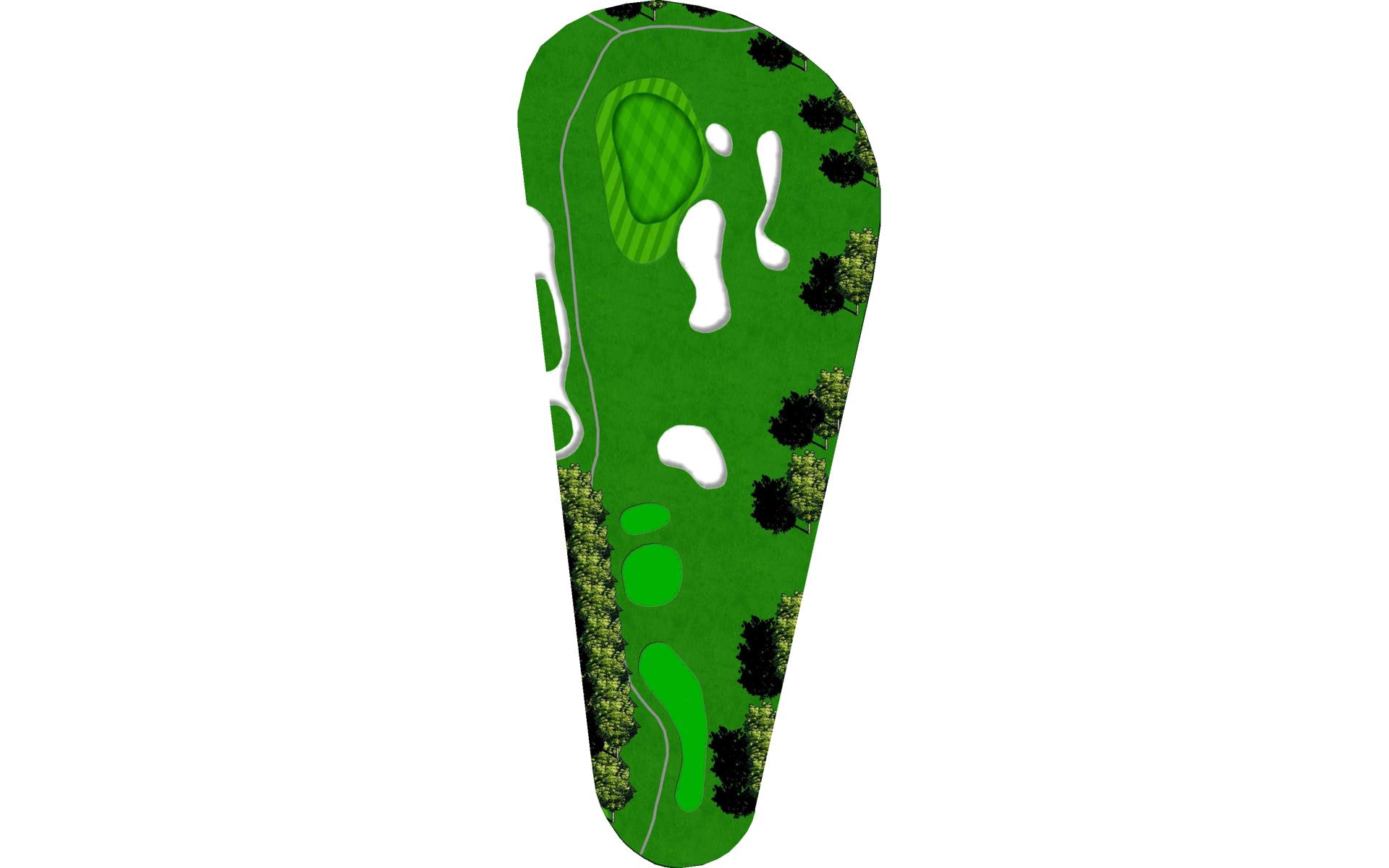 Slight dogleg left par 4 requiring a well struck drive to avoid trees left and OB right. Take a chance down the left-hand side to gain an additional 20yds of roll and leave yourself a short iron to green. Left side of green is blocked out by mounding left and protected by bunker on right. Find the right section of green for a makeable birdie. Par is a good score here.