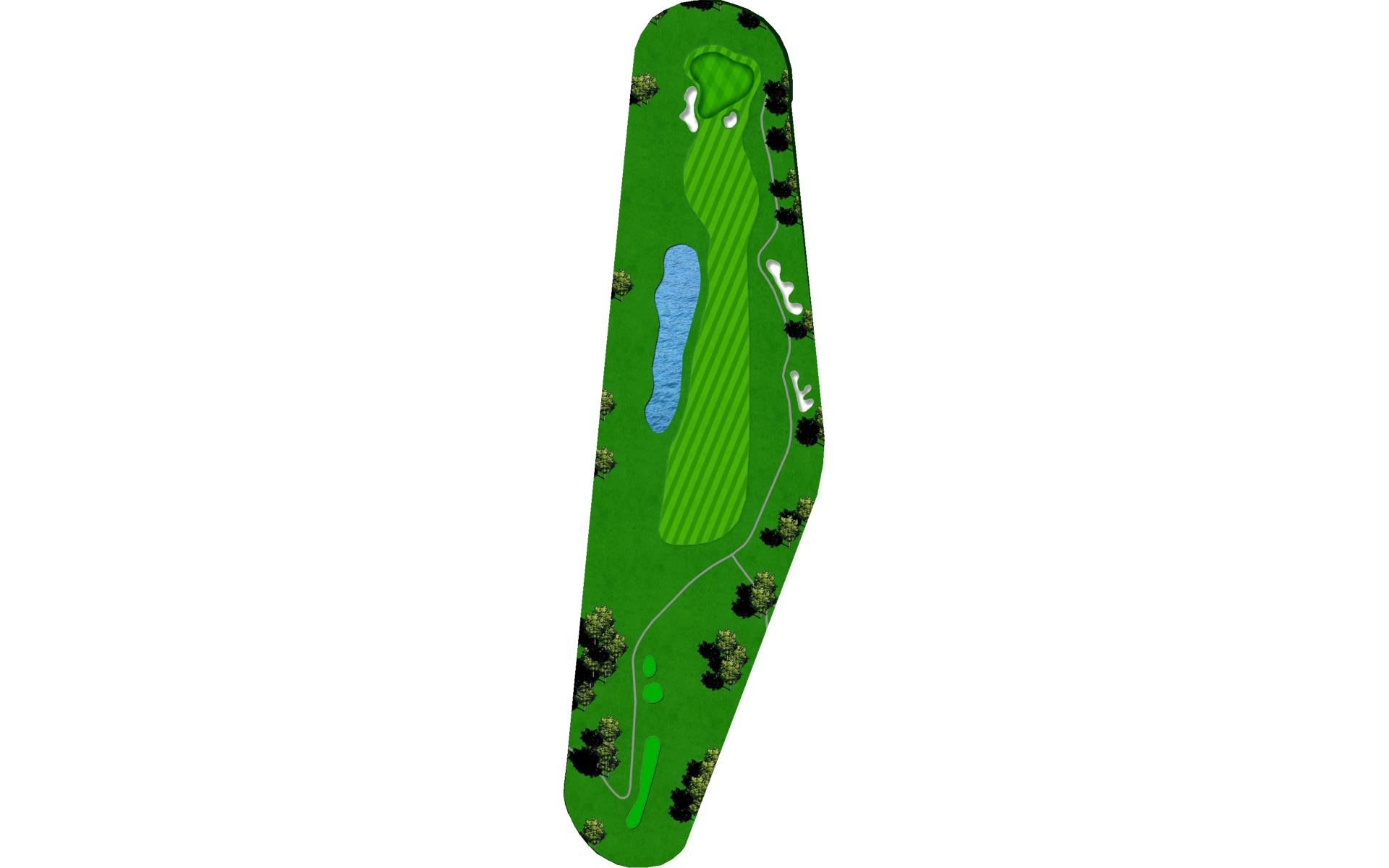Short par 4 protected by two ponds and OB on the left. A good drive here can leave short iron to wedge depending on your club choice off the tee. Second pond wraps around right side of green that slopes towards the water. Narrow green makes accuracy a premium.