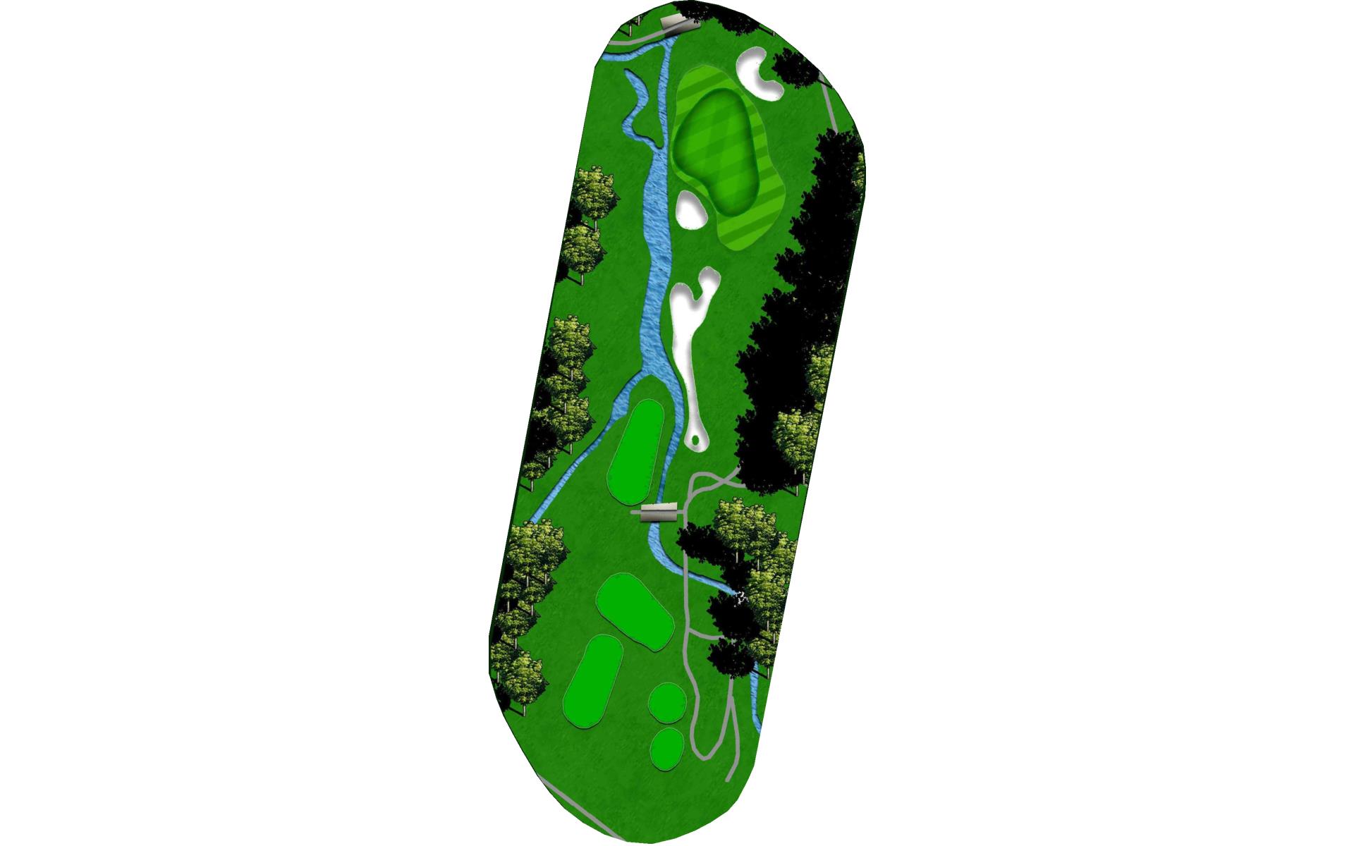 First and only Par 5 on front nine. Aim at the famous Railroad box car to ensure you hit this fairway. Bunkers and OB left are only the start of the trouble. A creek runs diagonally through the approach landing area with large bunkers right and short of green, but a good drive makes this a reachable hole with long iron or wood.