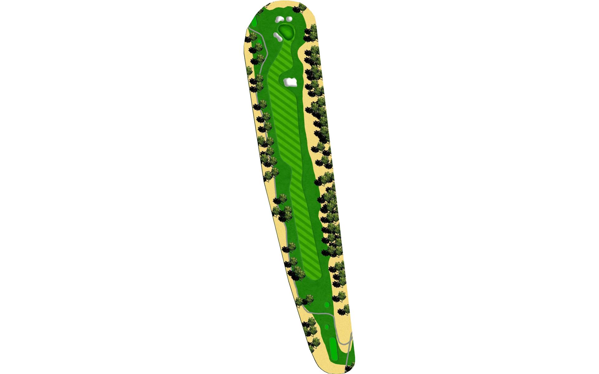 A slight dogleg left with out-of-bounds on both sides. Bunkers at the dogleg force an accurate tee shot. A well-positioned second shot will let you decide to go for the pin or settle for the center of this flat, small green protected by bunkers in front.