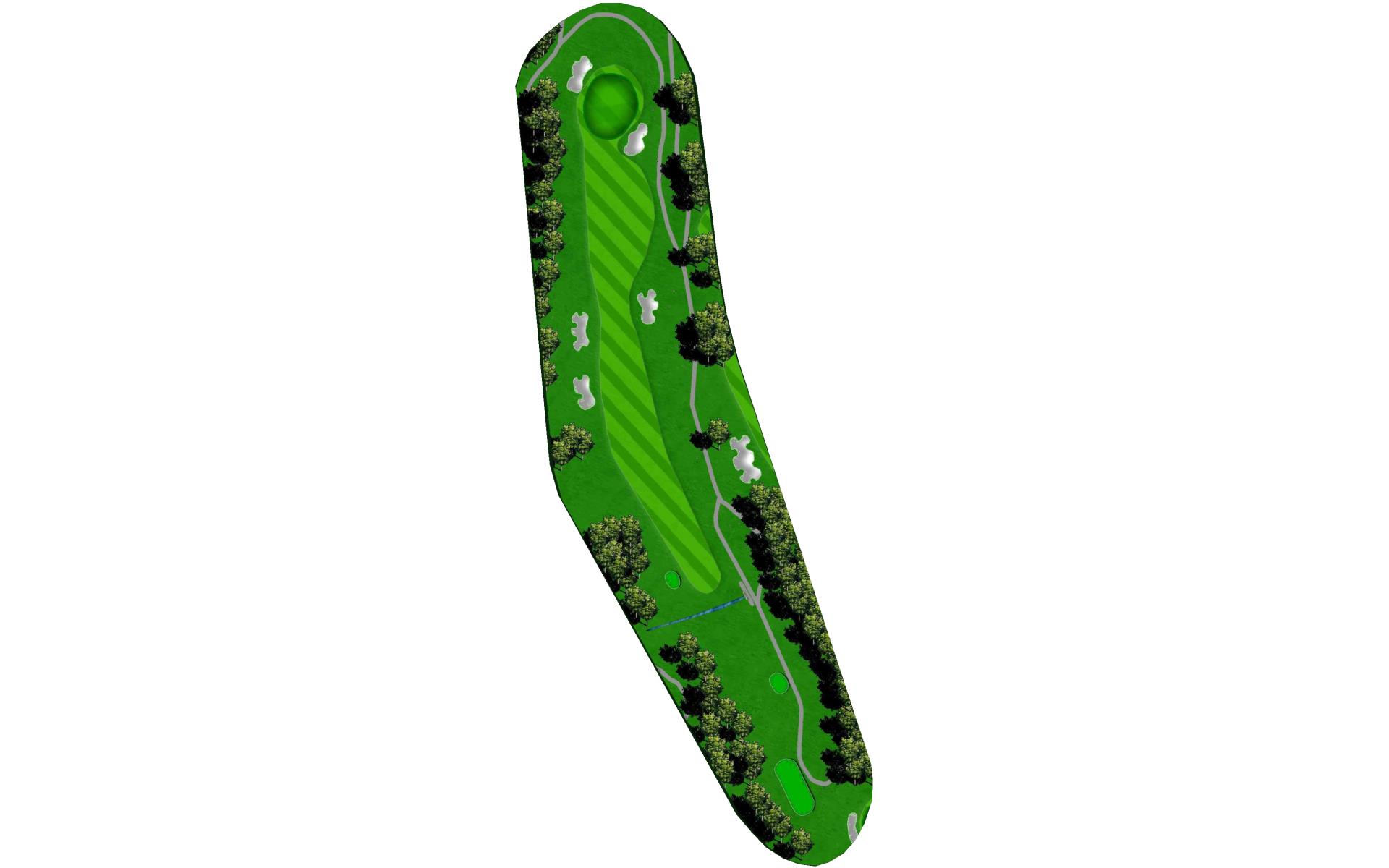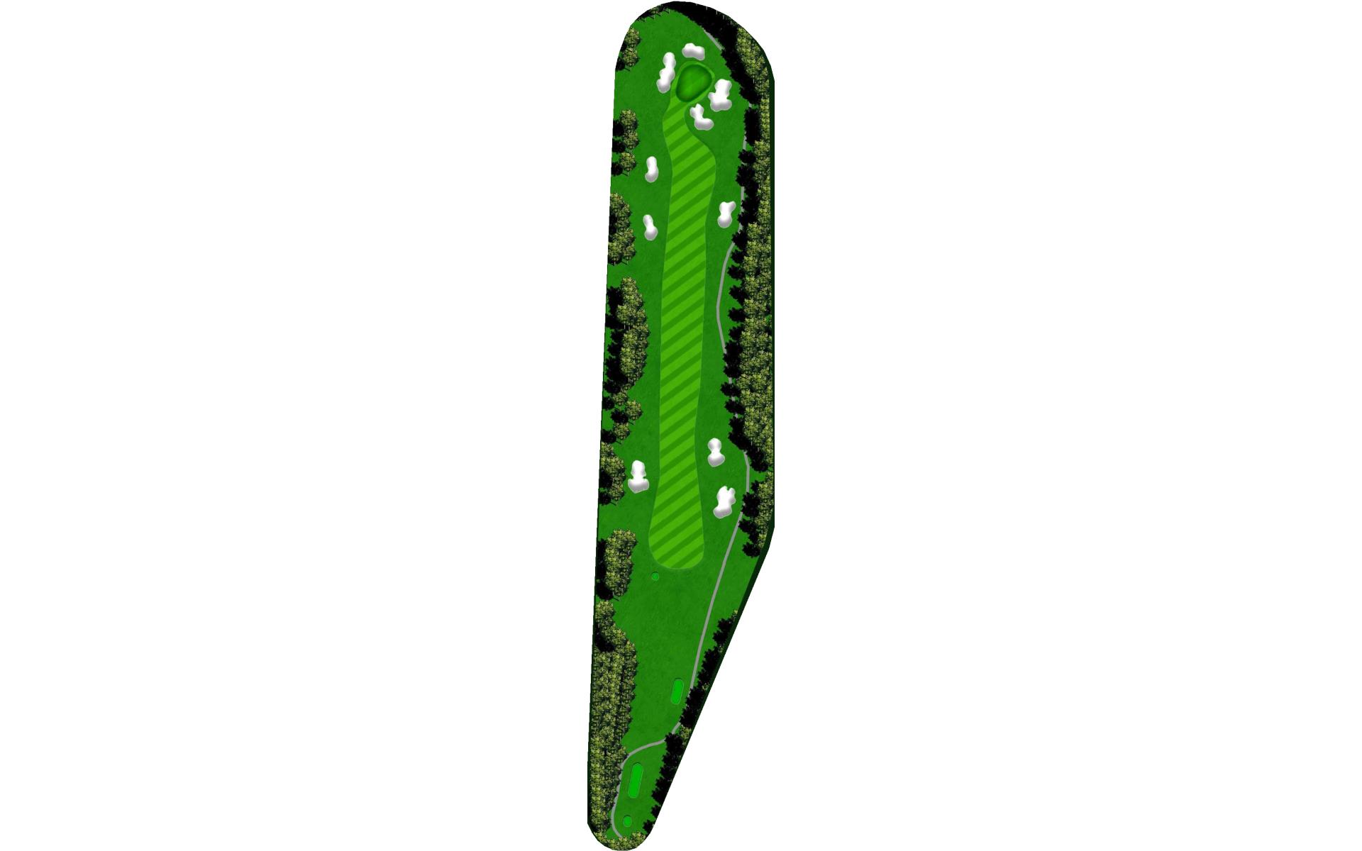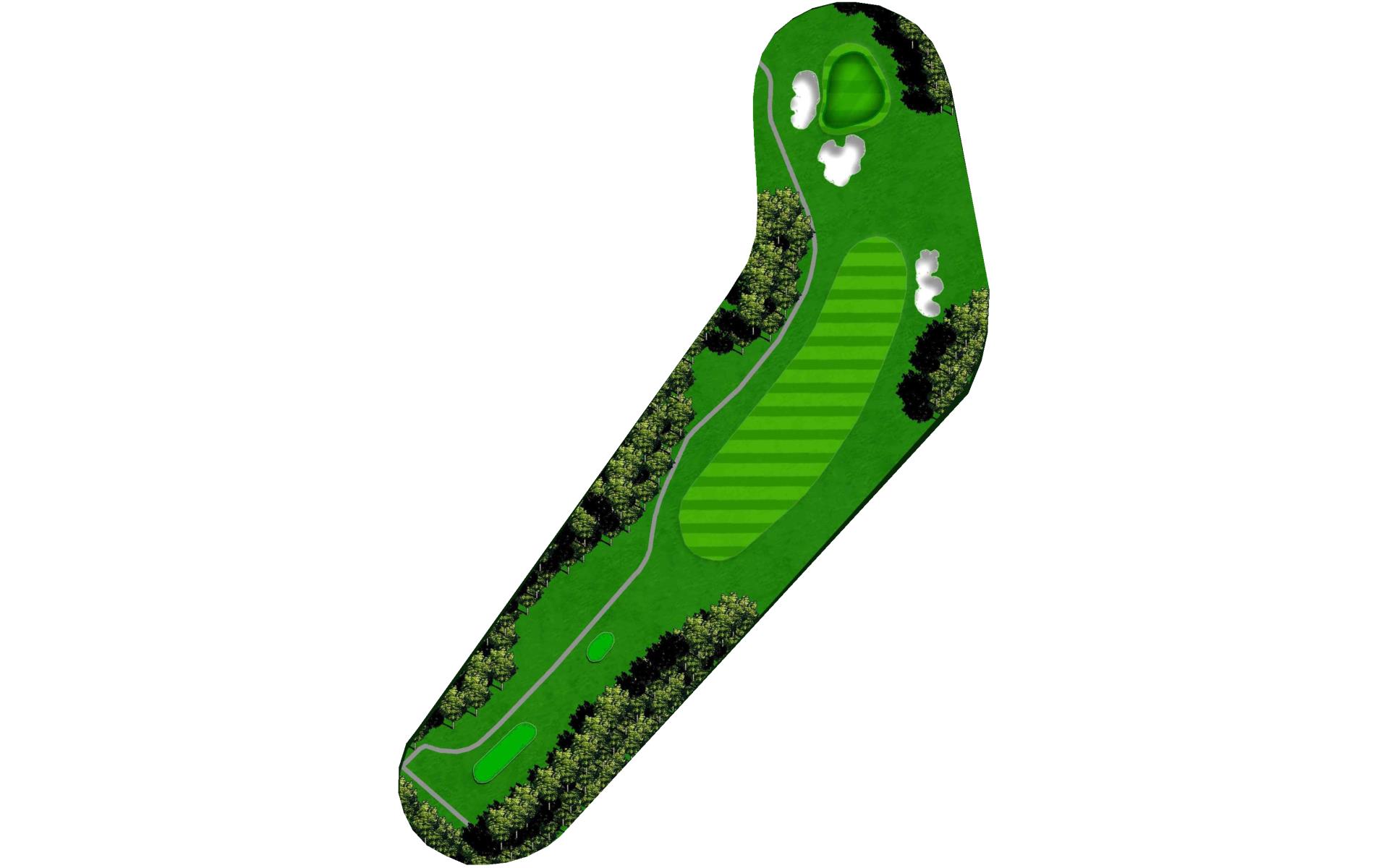 Slight dogleg right going uphill. Large green with multiple slopes and tiers.
