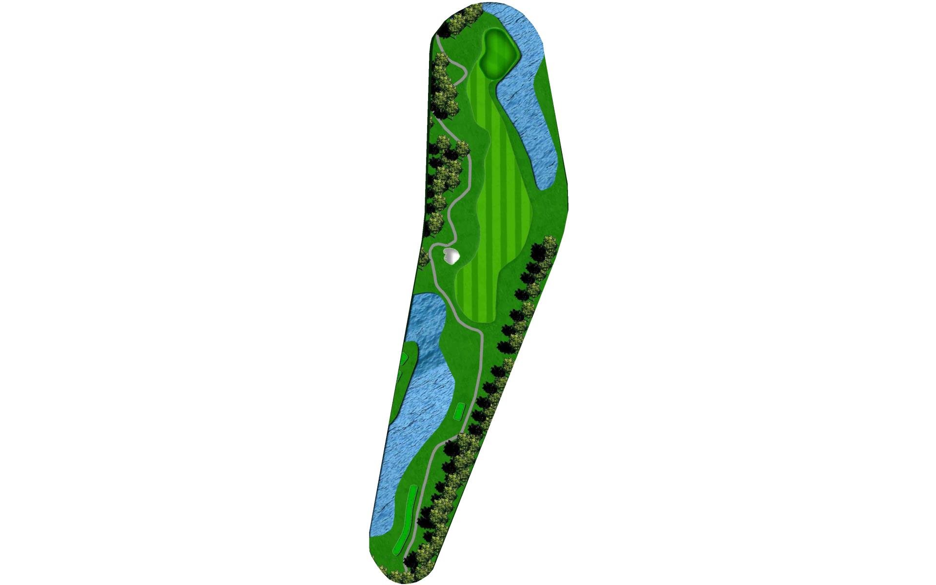"Eagle's Dare" is the only par 5 that does not force players to layup off the tee and is the longest hole on the golf course. Water surrounds this elevated two-tiered green on 3 sides, out-of-bounds runs down the other, and a large greenside bunker sits just short and to the right. Players should think carefully before taking it on.