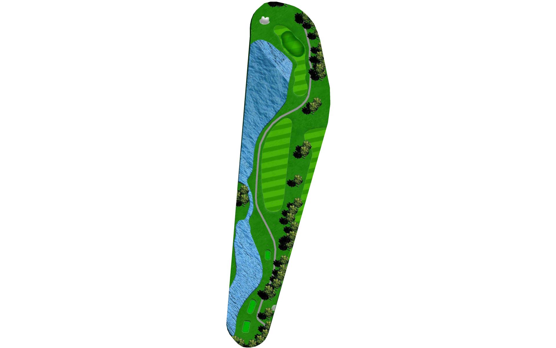 With water down the right and out-of-bounds down the left, the first hole provides players with a formidable open tee shot. A raised green makes slightly off target approach shots require a good pitch shot to get up and down.
