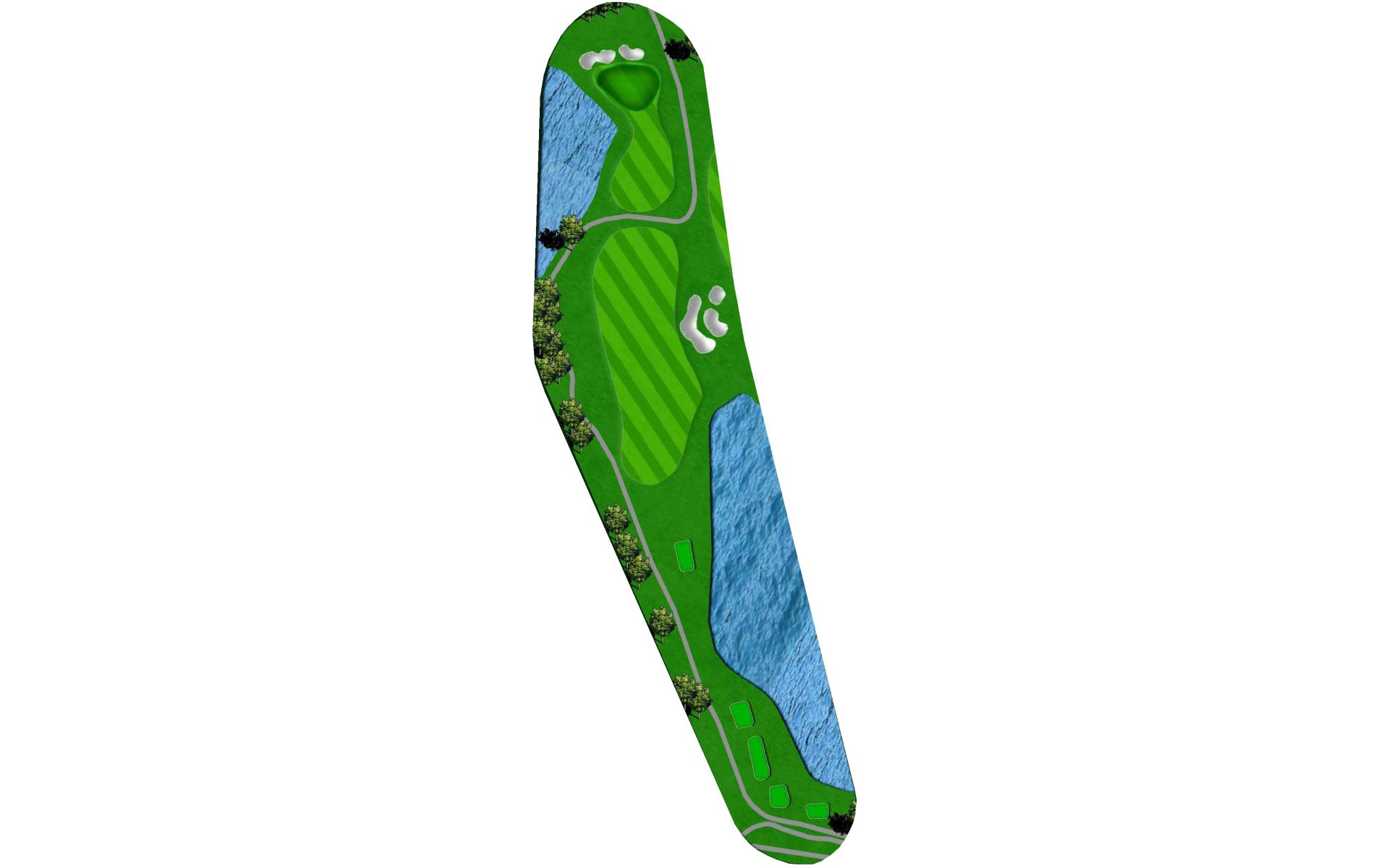 "Bagpipes" is a long par 4 that sets up for a challenging finish. A good drive leaves a long approach into yet another peninsula green. Extreme undulation in the middle parts of the green make placement on the second shot paramount to success with the putter.